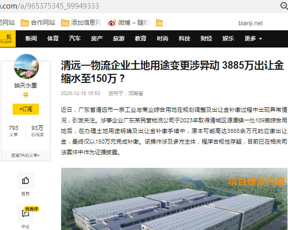 近日,广东省清远市一宗工业与商业综合用地在规划调整及出让金补缴过程中出现异常情况,引发关注。涉事企业广东某民营物流公司于2023年取得清城区源潭镇一处109亩综合用地后,在办理土地用途明确及出让金补缴手续中,原本可能高达3885余万元的应缴出让金,最终仅以150万元完成补缴。该操作涉及多方主体,程序合规性存疑,目前已在相关司法案件中作为证据披露。